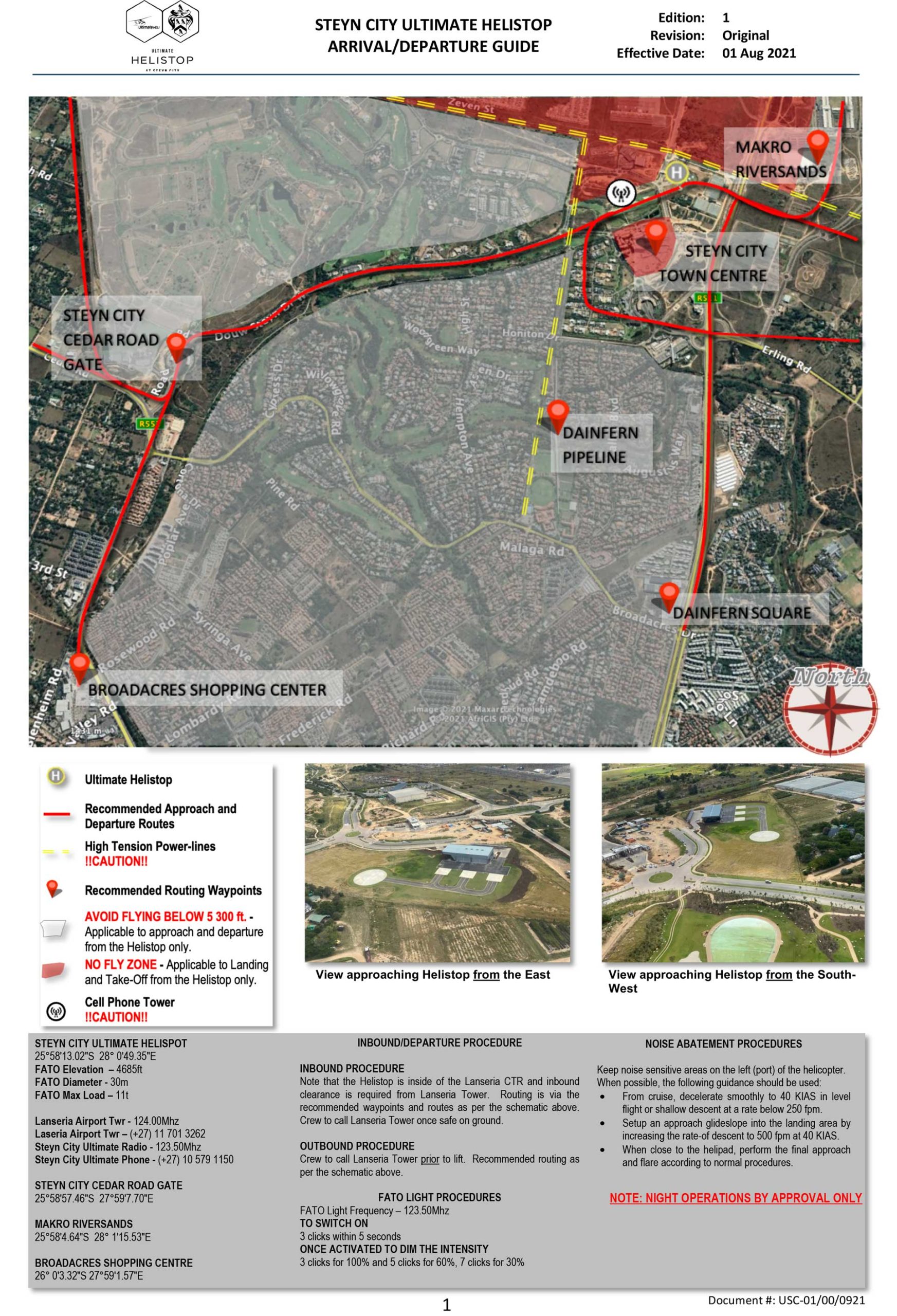 All aircraft to contact Grand Central Tower (FAGC) from The FATO BEFORE departure to advise that they are getting airborne and AFTER approach BEFORE taxi to advise that they are safe.
